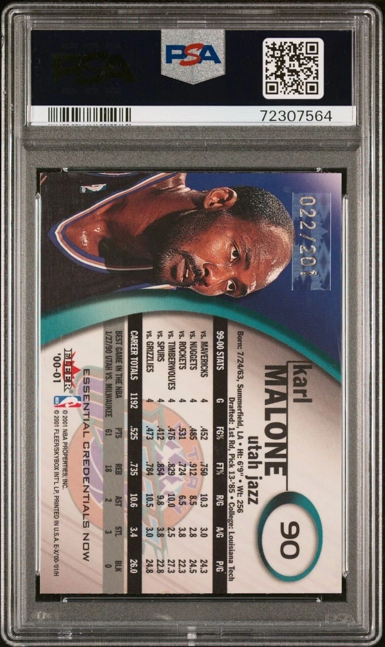2000-01 E-X EX essential credentials NOW Karl Malone #90 /201 PSA 8 Jazz POP 2 quantity
