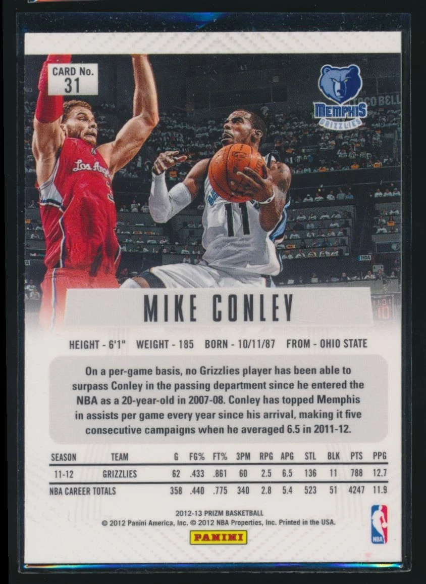 2012-13 Panini Prizm Silver Prizm #31 MIKE CONLEY Memphis grizzlies RARE quantity