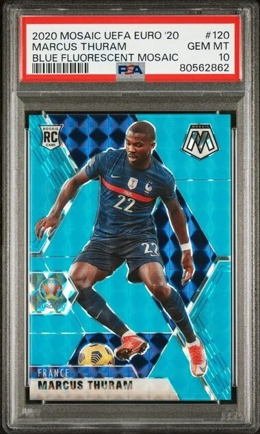 2020-21 Mosaic Euro Marcus Thuram Blue Fluorescent 06/15 Rookie RC PSA 10 Pop 2
