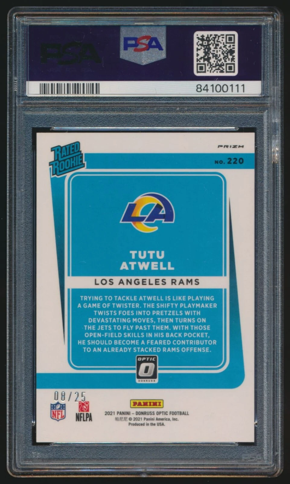 2021-22 Panini Donruss Optic Black Pandora Tutu Atwell Rated Rookie /25 PSA 10