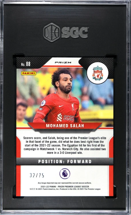 2021-22 Panini Prizm Premier League Blue Ice Prizm /75 Mohamed Salah #88 SGC 9.5 quantity