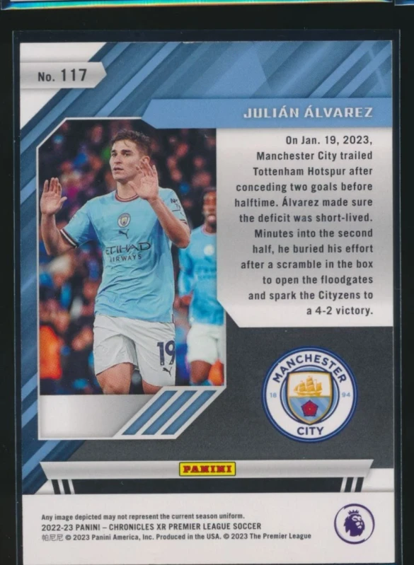 2022-23 Panini Chronicles XR EPL Julian Alvarez Gold /16 Rookie #117
