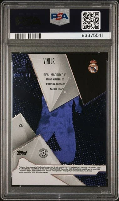 2022-23 Topps Crystal Premium UCL Vini Jr. Purple Real Madrid #53 PSA 10 17/99