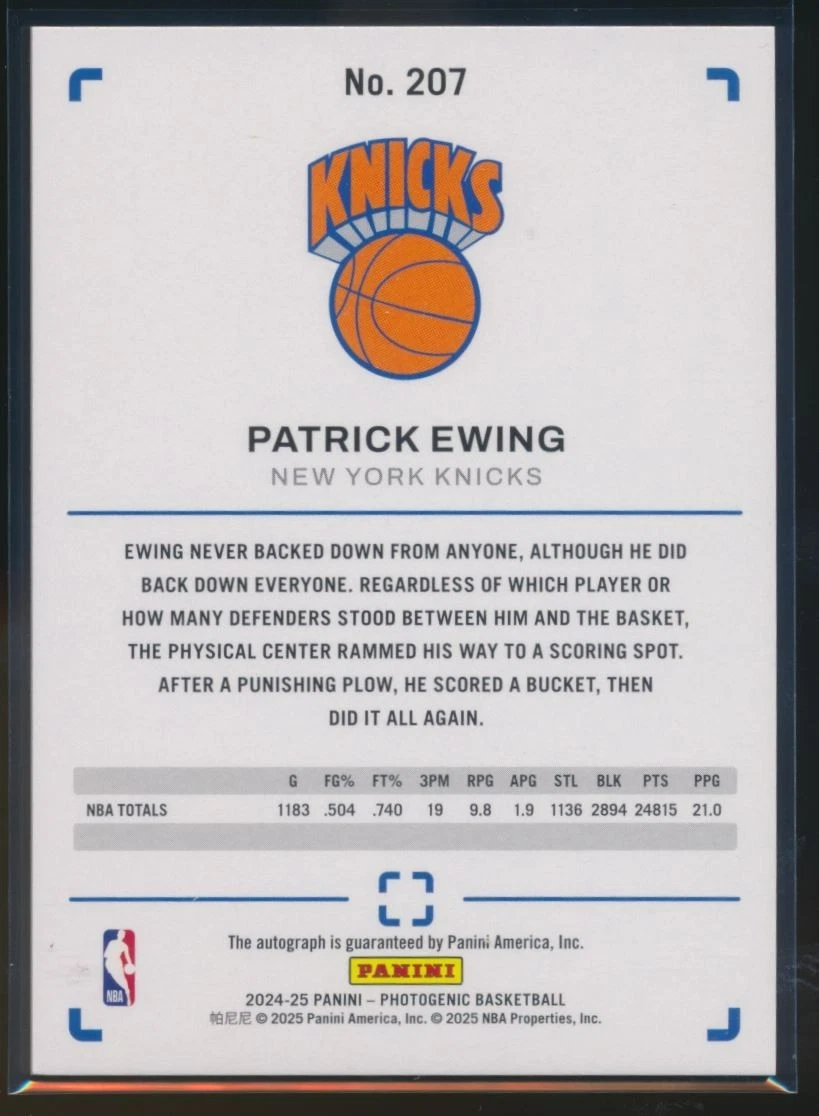 2024-25 Panini Photogenic Patrick Ewing #207 Variation Auto Knicks Case Hit SSP
