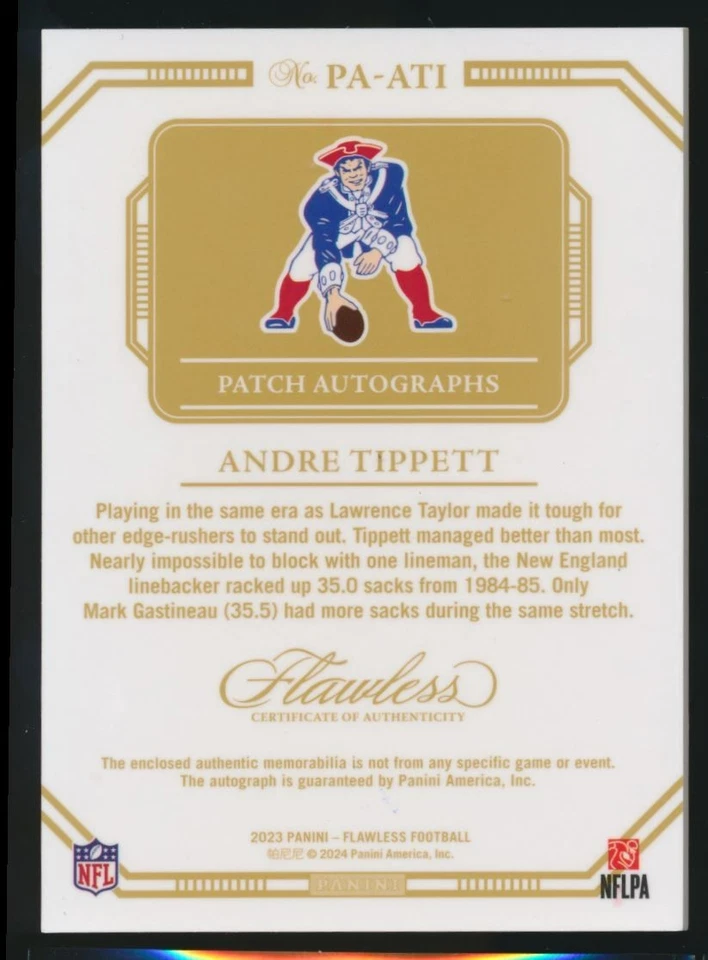 Andre Tippett 2023 Panini Flawless Silver Patch Auto 11/20 #PA-ATI Patriots quantity