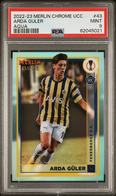 2022-23 Topps Merlin Chrome UCC #43 Arda Guler Aqua Rookie /199 PSA 9